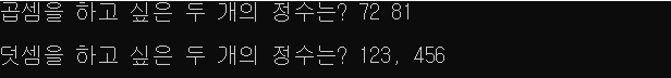 printf("\n덧셈을 하고 싶은 두 개의 정수는? ");